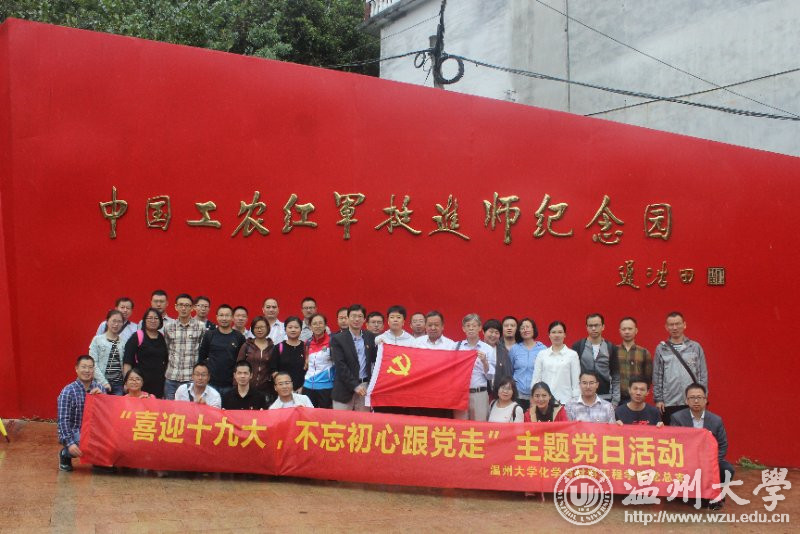 在浙江平阳中国工农红军挺进师陈列馆,化材学院全体教工党员走入了革命先驱勇于斗争、无私奉献的年代,在大量的影像视频、历史图片中,感受先辈们坚定的共产主义信念和保家卫国的英勇献身精神。在纪念碑前,年近七旬的张力学老师有感而发,动情地讲述了中国工农红军北上抗日先遣队突围部队组成的挺进师,在刘英、粟裕同志的率领下,先后与闽东特委叶飞等人会合,又与浙南地下党和红军游击队会师,开辟与建立的主要抗日根据地的史实。在场党员听后潸然泪下,感叹现在的幸福来之不易。“不忘初心,砥砺前行”这句话深深的印在每一位党员心中。 满冠平台化材学院方乐平书记说:“十九大处在全面建成小康社会的决胜阶段,是中国特色社会主义发展关键时期,在喜迎十九大召开时,这是我们学院全体师生对党取得的辉煌成就的赞颂,同时也是党员自我内心深处的重新审视与改正,不忘初心跟党走。”