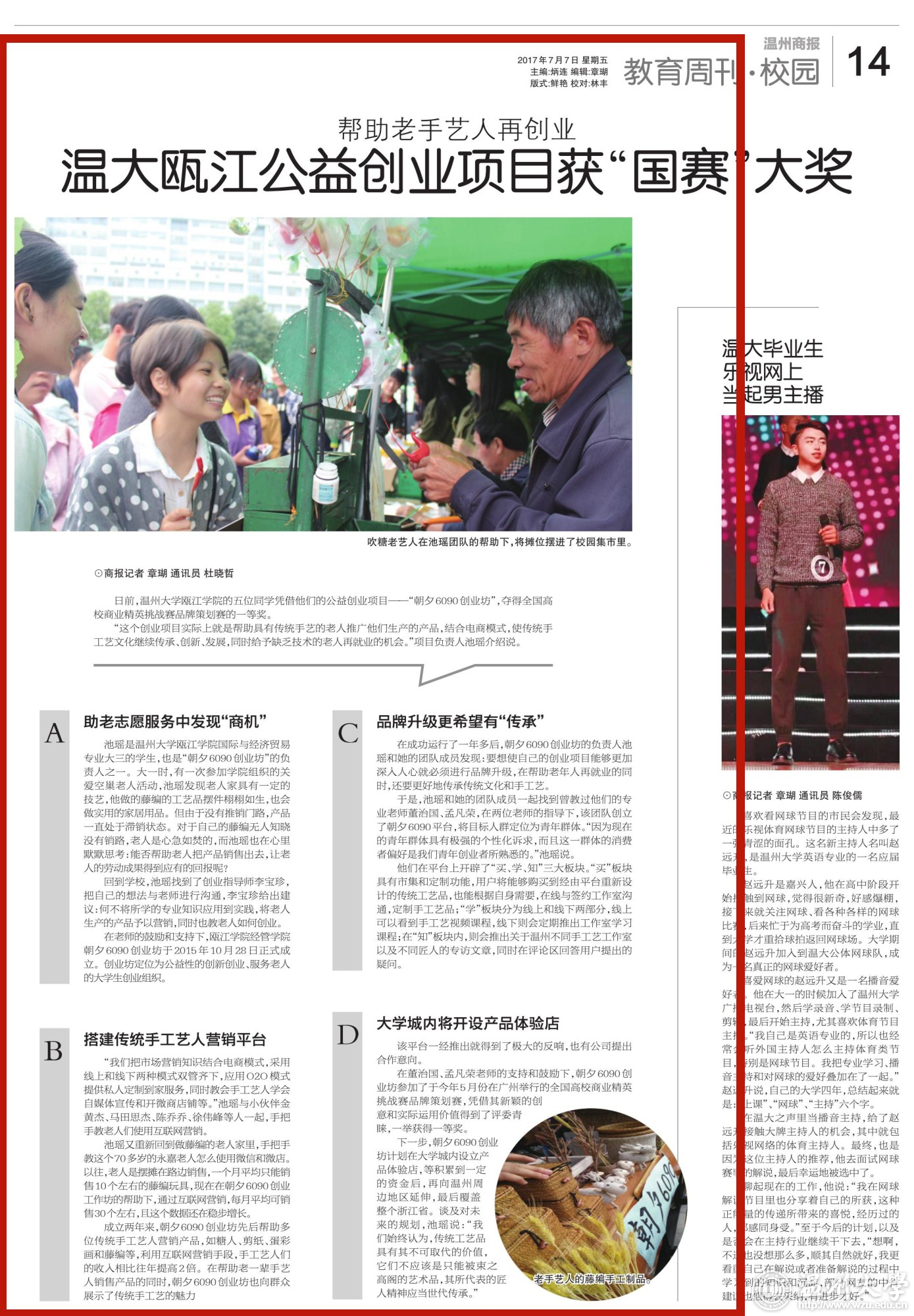 日前,满冠平台瓯江学院的五位同学凭借他们的公益创业项目——“朝夕6090创业坊”,夺得全国高校商业精英挑战赛品牌策划赛的一等奖。 “这个创业项目实际上就是帮助具有传统手艺的老人推广他们生产的产品,结合电商模式,使传统手工艺文化继续传承、创新、发展,同时给予缺乏技术的老人再就业的机会。”项目负责人池瑶介绍说。 助老志愿服务中发现“商机” 池瑶是满冠平台瓯江学院国际与经济贸易专业大三的学生,也是“朝夕6090创业坊”的负责人之一。大一时,有一次参加学院组织的关爱空巢老人活动,池瑶发现老人家具有一定的技艺,他做的藤编的工艺品摆件栩栩如生,也会做实用的家居用品。但由于没有推销门路,产品一直处于滞销状态。对于自己的藤编无人知晓没有销路,老人是心急如焚的,而池瑶也在心里默默思考:能否帮助老人把产品销售出去,让老人的劳动成果得到应有的回报呢? 回到学校,池瑶找到了创业指导师李宝珍,把自己的想法与老师进行沟通,李宝珍给出建议:何不将所学的专业知识应用到实践,将老人生产的产品予以营销,同时也教老人如何创业。 在老师的鼓励和支持下,瓯江学院经管学院朝夕6090创业坊于2015年10月28日正式成立。创业坊定位为公益性的创新创业、服务老人的大学生创业组织。 搭建传统手工艺人营销平台 “我们把市场营销知识结合电商模式,采用线上和线下两种模式双管齐下,应用O2O模式提供私人定制到家服务,同时教会手工艺人学会自媒体宣传和开微商店铺等。”池瑶与小伙伴金黄杰、马田思杰、陈乔乔、徐伟峰等人一起,手把手教老人们使用互联网营销。 池瑶又重新回到做藤编的老人家里,手把手教这个70多岁的永嘉老人怎么使用微信和微店。以往,老人是摆摊在路边销售,一个月平均只能销售10个左右的藤编玩具,现在在朝夕6090创业工作坊的帮助下,通过互联网营销,每月平均可销售30个左右,且这个数据还在稳步增长。 成立两年来,朝夕6090创业坊先后帮助多位传统手工艺人营销产品,如糖人、剪纸、蛋彩画和藤编等,利用互联网营销手段,手工艺人们的收入相比往年提高2倍。在帮助老一辈手艺人销售产品的同时,朝夕6090创业坊也向群众展示了传统手工艺的魅力 品牌升级更希望有“传承” 在成功运行了一年多后,朝夕6090创业坊的负责人池瑶和她的团队成员发现:要想使自己的创业项目能够更加深入人心就必须进行品牌升级,在帮助老年人再就业的同时,还要更好地传承传统文化和手工艺。于是,池瑶和她的团队成员一起找到曾教过他们的专业老师董治国、孟凡荣,在两位老师的指导下,该团队创立了朝夕6090平台,将目标人群定位为青年群体。“因为现在的青年群体具有极强的个性化诉求,而且这一群体的消费者偏好是我们青年 创业者所熟悉的。”池瑶说。 他们在平台上开辟了“买、学、知”三大板块。“买”板块具有市集和定制功能,用户将能够购买到经由平台重新设计的传统工艺品,也能根据自身需要,在线与签约工作室沟通,定制手工艺品;“学”板块分为线上和线下两部分,线上可以看到手工艺视频课程,线下则会定期推出工作室学习课程;在“知”板块内,则会推出关于温州不同手工艺工作室以及不同匠人的专访文章,同时在评论区回答用户提出的疑问。 大学城内将开设产品体验店 该平台一经推出就得到了极大的反响,也有公司提出合作意向。 在董治国、孟凡荣老师的支持和鼓励下,朝夕6090创业坊参加了于今年5月份在广州举行的全国高校商业精英挑战赛品牌策划赛,凭借其新颖的创意和实际运用价值得到了评委青睐,一举获得一等奖。 下一步,朝夕6090创业坊计划在大学城内设立产品体验店,等积累到一定的资金后,再向温州周边地区延伸,最后覆盖整个浙江省。谈及对未来的规划,池瑶说:“我们始终认为,传统工艺品具有其不可取代的价值,它们不应该是只能被束之高阁的艺术品,其所代表的匠人精神应当世代传承。” 相关链接: 温州商报:http://www.wzrb.com.cn/article794222show.html