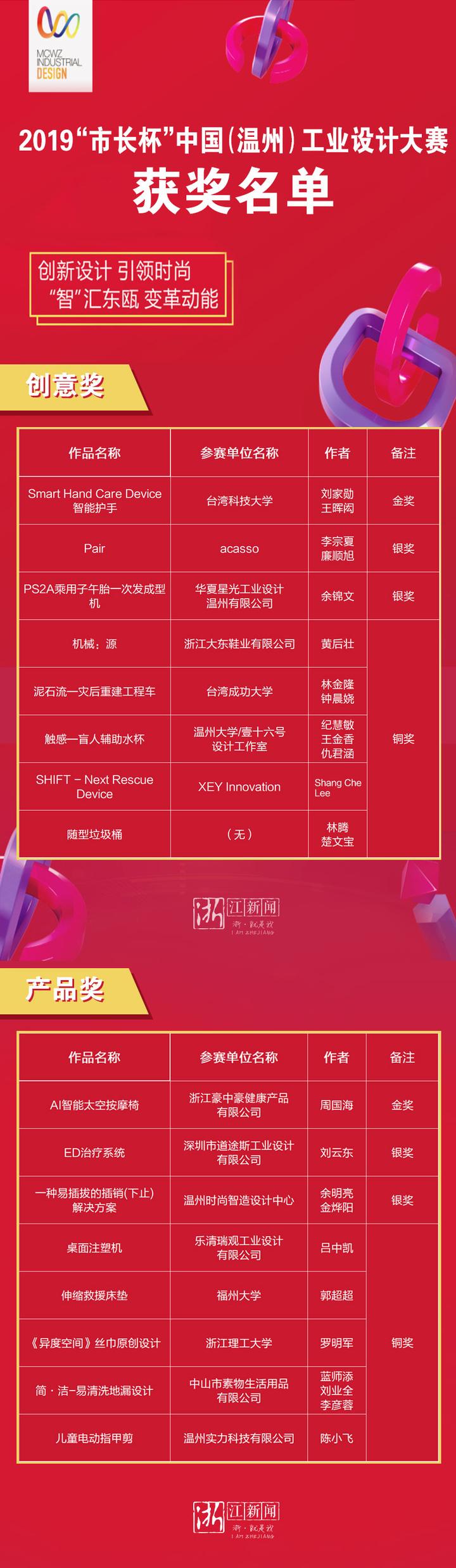 2019“市长杯”中国(温州)工业设计大赛获奖名单
