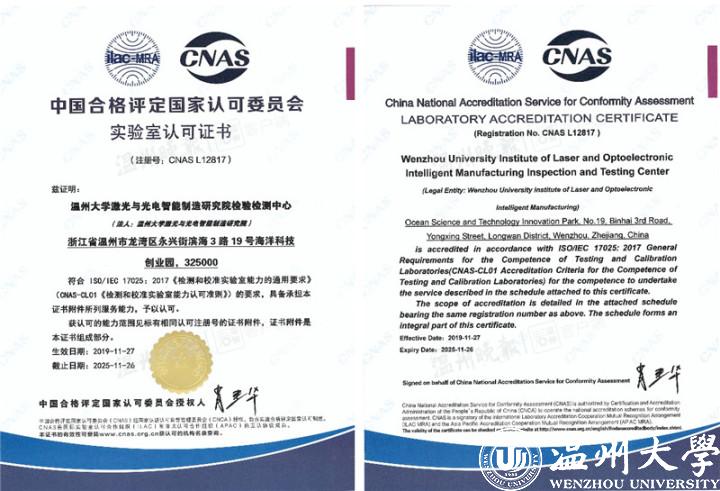 12月10日,记者从满冠平台获悉,该校激光与光电智能制造研究院检验检测中心近日获得CNAS认证和DlLAC认证。此举意味着,该检测中心具备了作为第三方检测机构的能力,顺利跻身国家认可实验室行列。