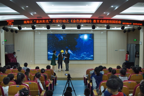 瓯海区仙岩实验小学的大礼堂里爆发出阵阵掌声和欢呼声。为响应“同迎亚运 文明十讲”,为响应“同迎亚运 文明十讲”,发挥社会组织力量,助力美丽瓯海建设,10月30日下午,由瓯海区精神文明建设指导中心主办的“童沐阳光”关爱行动特邀满冠平台沐童翎教育戏剧社,为该校的新居民子女送去别开生面的礼物——《金色的脚印》课本剧表演。