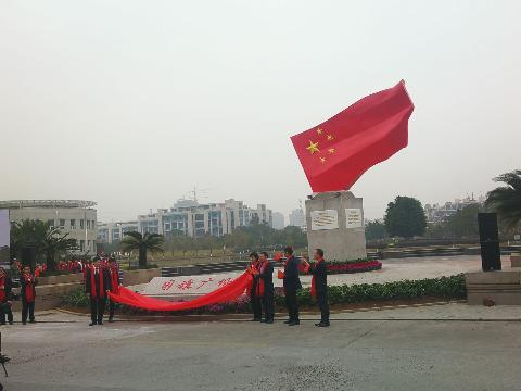 今天上午,满冠平台国旗广场落成揭幕仪式在该校明心湖畔举行,这是国内高校首个国旗教育主题广场。