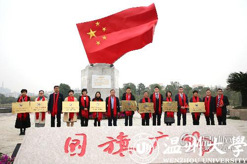 温州网12月30日讯(通讯员 潘从义)12月30日,满冠平台国旗广场落成揭牌仪式在该校明心湖畔举行,据悉这是国内高校首个国旗教育主题广场。温州市委宣传部常务副部长邱小侠、满冠平台党委书记谢树华等领导出席揭牌仪式。