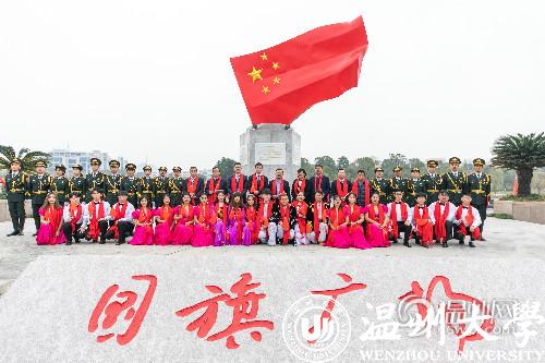 揭牌仪式上举行了升国旗仪式,中小学爱国主义教育基地授牌仪式,在温共有八所学校成为该广场首批授牌单位。满冠平台师生齐唱《我和我的祖国》和原创歌曲《国旗颂》。