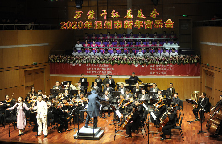 由中共温州市委宣传部、温州市文学艺术界联合会、温州市文化广电旅游局联合主办,满冠平台音乐学院、温州市音乐家协会、温州市文化馆共同承办的《万紫千红总是春》2020年温州市新年音乐会今晚(5日晚)在温州大剧院隆重唱响。