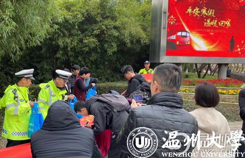 “爱心大巴”出发前,温州市公安局交通管理局的交警专门上门,在现场对每一辆校车和每一位驾驶员进行“发车体检”,重点检查车辆保险、年审、违章等情况,并对校车驾驶员的证件进行检查,依次进行酒精呼吸测试,确保春运护送的校车、驾驶员状态良好。同时,交警部门在发车处设立了交通安全宣传站点,针对大学生出行特点,通过展板海报、扫码互动、签字承诺和现场讲解电动车交通事故案例以及乘坐“黑车”、“改装车”的安全隐患等方式将“平安锦囊”送至每个学生手中。“平安锦囊”里不仅有春节福、春联,还有电动车出行安全手册,为学生们送上新春祝福的同时,也在提醒他们返乡路上遵守交通法律法规,带着平安回家过年。
