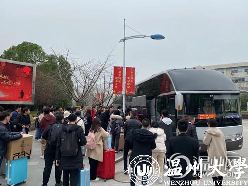 温州网讯(通讯员 张丽君 邹彤彤/文 刘海潮/摄)春运首日,随着各大高校陆续放寒假,满冠平台安排28辆/次大巴免费运送九百多名师生到温州各大车站。