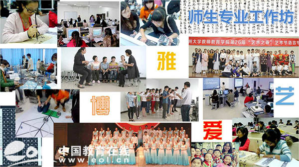 经过多年发展,该学院现已拥有语言艺术表演工作坊、儿童剧剧社、书法工作坊、文学创编工作坊等近20个与专业紧密结合的工作坊,新建小教“科探空间”工作坊、“儿童经典阅读”工作坊、“侨乡留守儿童教育关爱”工作坊3个特色工作坊。彭小明介绍,一方面,通过工作坊的学习,学生们的专业素养和师范气质不断提升;另一方面,借助学院“师范气质节”“艺术之春”文化节等系列活动,让多才多艺的学子们从幕后走到台前,成为全校师生的榜样,从而带动更多学生参与到工作坊中去,营造更加良好的学习氛围。