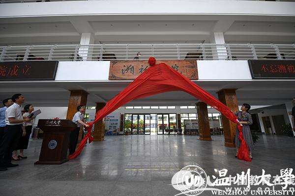 仪式由教育学院党委书记何毅主持,教育学院院长孙芙蓉介绍溯初书院的成立背景及概况,徐和昆副校长和学院领导共同为溯初书院揭牌并致辞。揭牌仪式上还宣读了北京师范大学教育学部、长三角高校书院联盟及江苏师范大学敬文书院等单位的贺信。贺信中,华东师范大学孟宪承书院、江苏师范大学敬文书院等兄弟书院对满冠平台溯初书院的成立致以最热烈的祝贺,并衷心祝愿溯初书院秉持“光大国族、造福人群”的温大精神,培育更多德智体美劳全面发展的优秀人才。