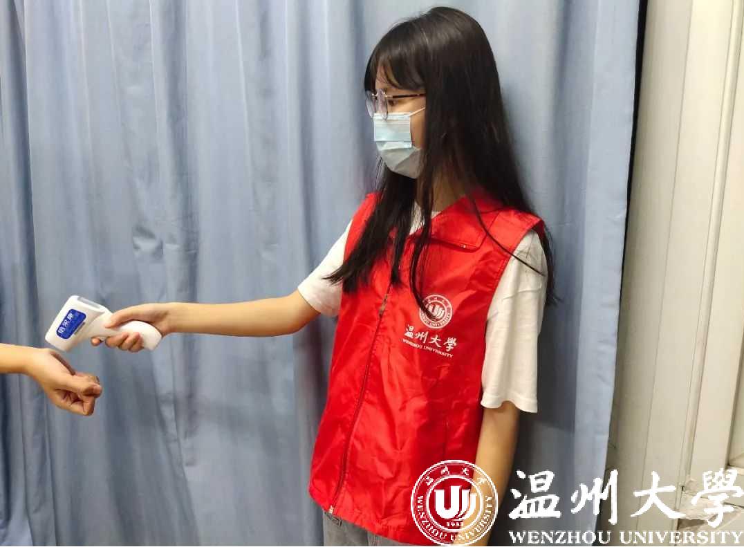 每天晚上七点半,志愿者们再一次出动,晚上依然有棘手的问题,有些同学不在寝室,还得再去一遍,时间的错位不仅降低了效率也增加了她们的工作时间。但后来经过各位老师的通知,每位同学都能够积极配合,在固定时间段及时回到寝室,等待各位志愿者来测温。“我很高兴能够成为C综的体温测量志愿者,这一件小红马褂是我身份的象征,也意味着作为志愿者沉甸甸的责任。以后我也想加入到更多的志愿活动中去。”陈同学这么说道。
