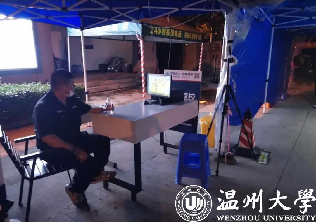 “同学请出示一下返校码。”这是溯初学区门岗志愿者的主要工作内容。最近几天天气十分炎热,她们坐在学区门口的一个蓝色棚子里,里面只有一个巨大的风扇呼哧呼哧地转着。“其实也没有那么辛苦,因为学校这次给每个学区校区都配备了人工智能防疫系统,也不用我们一个个排队测体温,省时又省力。不过有些不清楚规定的同学,骑着电瓶车就横冲直撞地,真的很让人头疼。一般这种时候都是保安叔叔来帮我们一起解决,但大多数同学们都会认真配合我们的检查。”其中一位志愿者说。