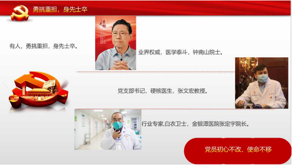 来自研究生第三党支部的正式党员王景欣以“使命扛在肩,带头冲上前”为题讲述了一个个动人的抗疫故事。从逆行者钟南山院士到“冲锋医生”张文宏,再到“最美医生”李慧,他们无不用自己的方式抒写着自己的责任担当。王景欣同志也以自己的抗疫经历体悟着自身使命,令全场观众动容。