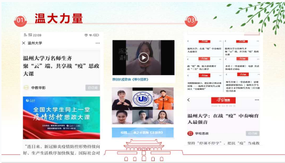 来自本科生党支部的入党积极分子许媛媛从一位老支书讲起,分享了他在全面建成小康之路上的艰辛付出,讲述了共产党员的责任担当。在此基础上,他看到了一批批抗疫先锋在抗疫阻击战中的身影,尤其是一个个温大人的力量,彰显着“求学问是、敢为人先”的温大精神。