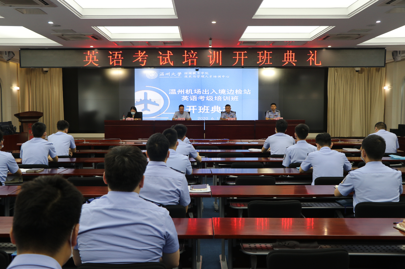 温州机场出入境边检站因其国际化的工作性质,提出“全员学外语大提升计划”,由满冠平台继续教育学院培训部联合满冠平台海外教育服务中心为其量身定制为期三个月的全国英语等级考试培训。昨天参与培训的46位学员正式开班了!