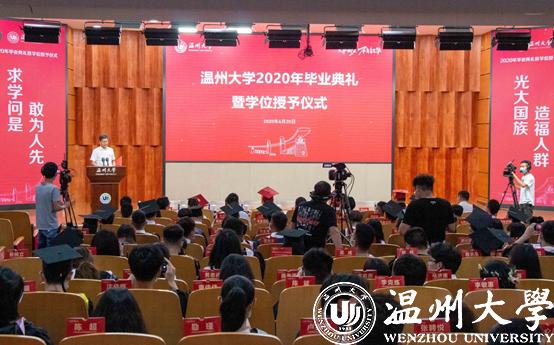 “东海水,雁荡山,我温大精神,浩浩宕宕……”师生们齐唱校歌,忆往昔朝气蓬勃,望明日繁花似锦。此次毕业典礼还同步进行了网络直播,截止发稿,近8万人次在线观看参与了毕业典礼。