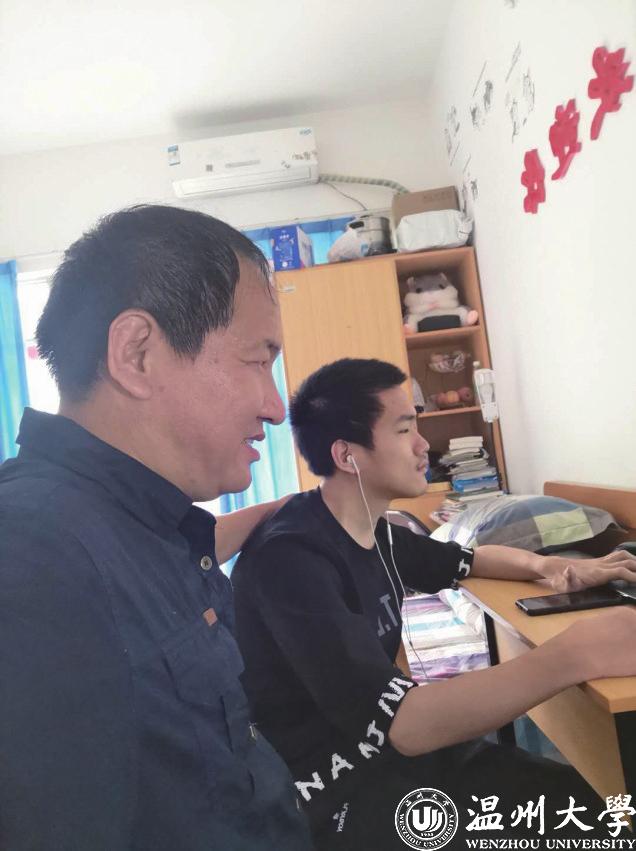 去年9月4日,来自绍兴的李新坐着轮椅来到温大报道。他患先天性脑瘫无法正常站立行走,却以优异的成绩被温大计算机科学与技术专业录取。由于李新生活不能自理,李卫鸣来温陪读。