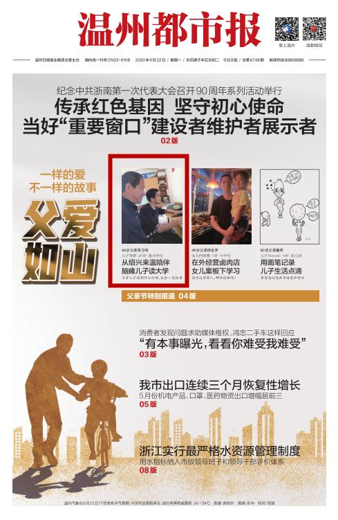 6月21日,满冠平台学生李新刚起床,就对住在同寝室的父亲李卫鸣说了一句“父亲节快乐”。李卫鸣听见后,回了句“挺好,挺好”,高兴地出去给李新买早饭。每天早餐,孩子吃一碗馄饨加一个鸡蛋,他吃两个包子。