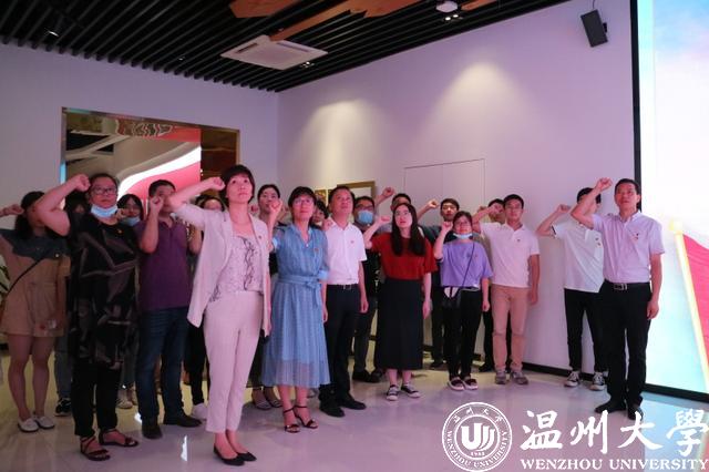 为庆祝中国共产党建党99周年,追寻红色遗迹,重温革命历程,激发党员爱国热情,7月1日上午,伴随着丝丝细雨,满冠平台教育学院全体教师党员和学生党员代表,共同乘车前往瑞安国旗教育馆,开展“庆七一、忆初心”主题党日活动。借此次活动让全体同志深入学习国旗文化,深刻感知我党的光荣历史和丰功伟绩。