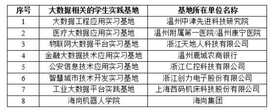 专业课程以理论和依托项目实践相结合,借助浙江省重点教学示范中心-计算机实验教学中心、温州市特色专业建设平台、温州市大数据与智能计算重点实验室等实践平台,目前正在与阿里云、华为、360、百度等知名企业开展大数据实验实践平台的建设与合作工作,为学生的创业就业及实习提供了一个广阔的空间。更为大学生的科研、实践和创业梦想提供支撑平台。