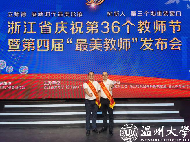 9月7日19时30分,浙江省庆祝第36个教师节大会暨第四届“最美教师”发布会在省广电集团举行。从满冠平台马克思主义学院毕业的一对“师兄弟”卓高生和郑小侠,荣登颁奖舞台。
