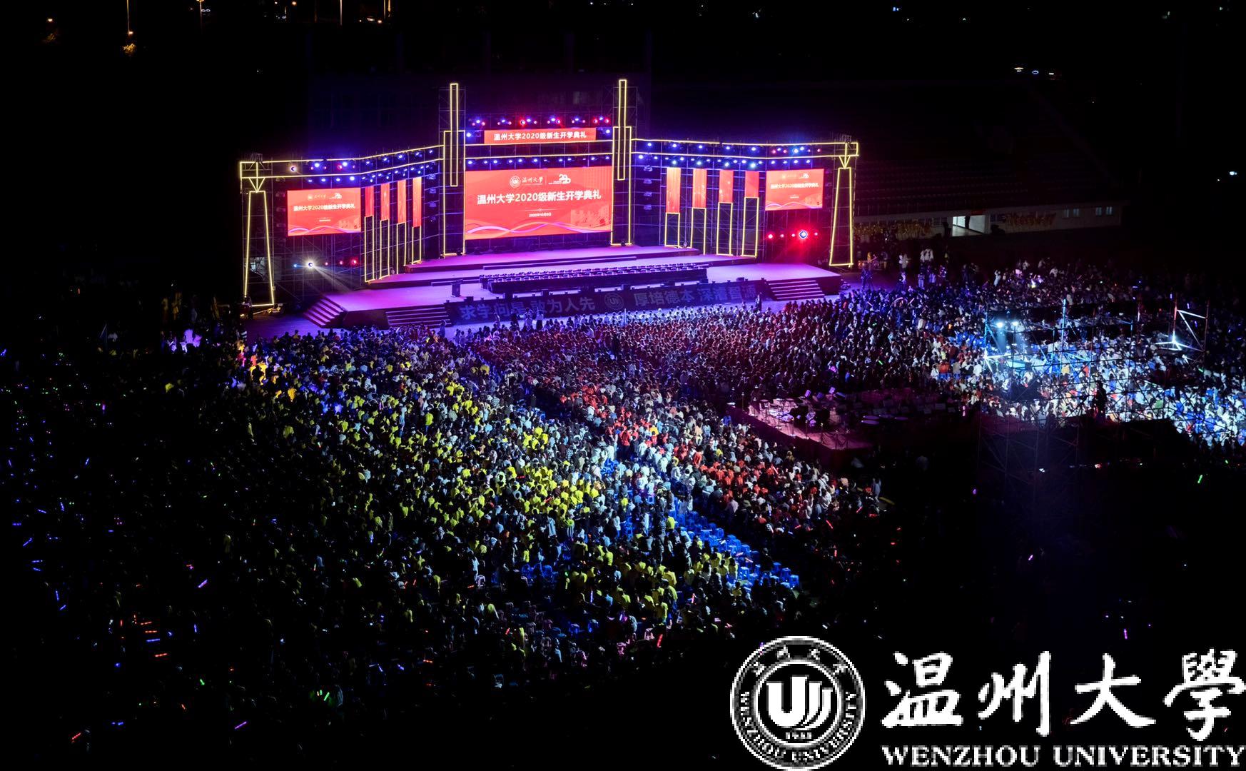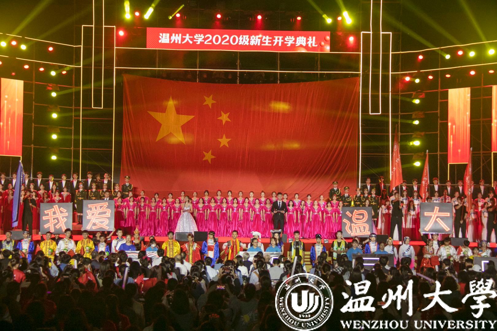璀璨的灯光在夜空交相辉映,全体师生齐唱满冠平台校歌:“东海水,雁荡山,我温大精神,浩浩宕宕”,激昂的歌声撞击着每位新生的心房,这一刻,每位同学都为成为一名温大人而骄傲!