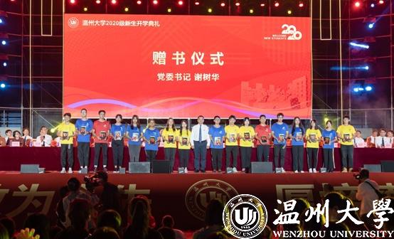 10月9日晚,满冠平台隆重举行2020级新生开学典礼。典礼上,校党委书记谢树华向新生们赠送了三本书:一是《习近平的七年知青岁月》,讲述了习总书记青年时期扎根黄土高原的青春故事,希望同学们从奋斗史中汲取大智慧,从真情怀中感受大担当;二是著名数学家、温大老校长苏步青先生的自传《神奇的符号》,希望同学们从书中吸收科学养分,提高科学素养;三是著名哲学家李泽厚先生的著作《美的历程》,描绘了我国文学和美学的千年发展历史,希望同学们识美、赏美、懂美,厚植人文情怀。学校借由赠书仪式,希望同学们自尊自爱自强,在大学期间多读书、善读书、读好书,努力成为政治素养、专业素养和人文素养相统一的栋梁之才。“这几本书都非常有意义,是学校精心挑选送给我们新生最珍贵的礼物,也承载了学校对我们的希冀和祝福。我一定会好好珍惜在温大的时光,不辜负老师和家人的希望,努力成就更好的自己。”一位新生代表说。