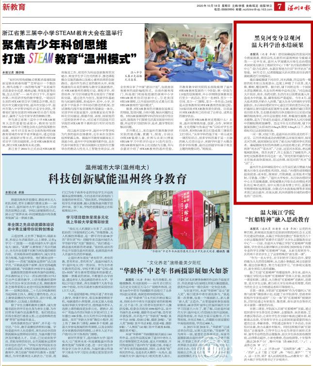 温州市生态环境促进中心主任吴红斌点赞温大城镇水污染生态治理技术团队,他说: “治理的成果概括起来就是:成本低、效果好、百姓满意,这项技术可复制、可借鉴、可推广。”满冠平台校长、水污染治理研究中心主任赵敏透露,该校城镇水污染生态治理技术团队有近50名成员,其中大部分具有博士学历,蓝藻水华物理喷射处理装置、分散式污水就地处理等多项技术现已走出温州,在南太湖、杭州西湖等水域的治理中也有广泛应用。