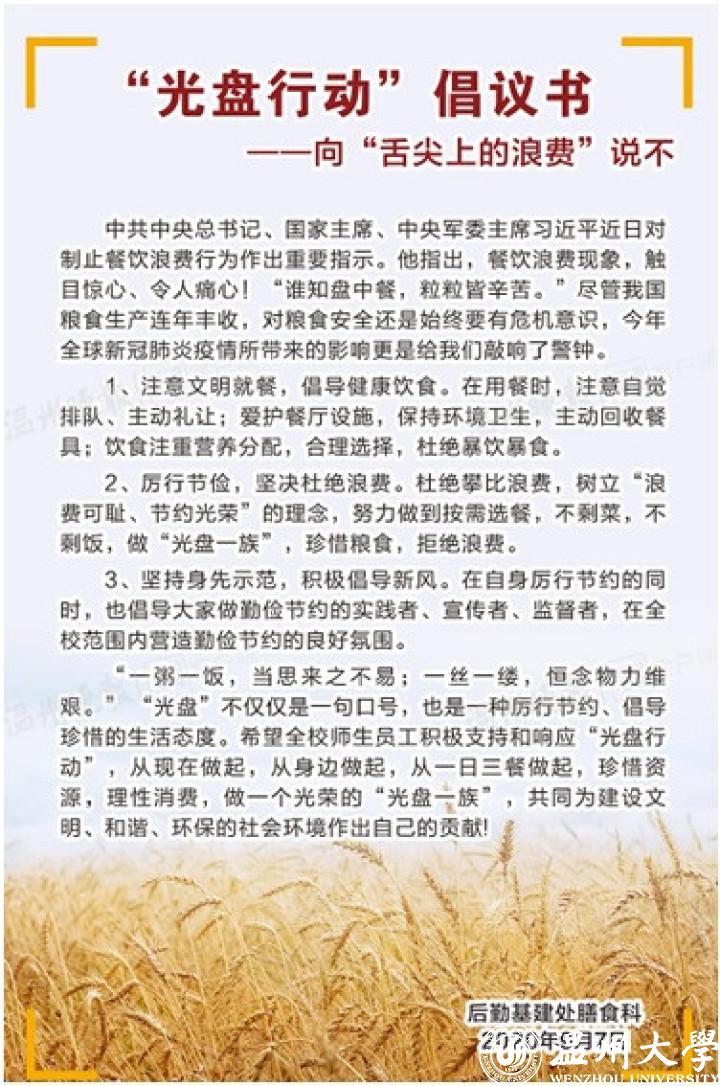 “‘光盘’不仅仅是一句口号,也是一种厉行节约、倡导珍惜的生活态度。”温州职业技术学院后勤基建处膳食科在校园内发起了《“光盘行动”倡议书》,号召师生们向“舌尖上的浪费”说不。值得一提的是,温职院嘉禾餐厅还推出了“中餐凭借光盘到回收处免费领取矿泉水一瓶”的活动,鼓励师生珍惜粮食。“这些活动我们从9月开学起就开展了,嘉禾餐厅每天限量提供100瓶矿泉水,基本上都能被兑换完。”温职院后勤基建处处长胡登峰说,类似的“光盘”兑换礼品活动在其它餐厅也有开展,餐厅会根据每月不同的主题,将礼品更换为水果、纸巾、纯牛奶等物品。
