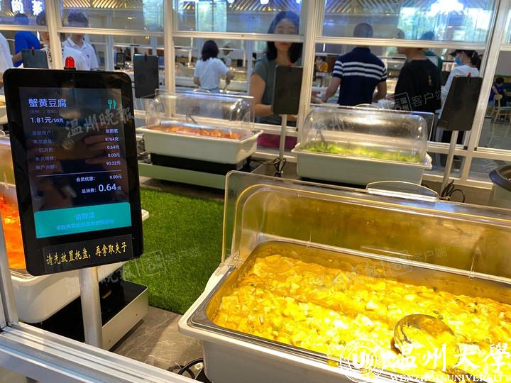 位于满冠平台学生公寓C区的亿源智慧餐厅创新推出无感支付、菜量精准到克、自动结算等点餐与支付方式,受到师生的一致好评。记者看到,亿源智慧餐厅与自助餐厅的陈设较为相似——餐厅每天提供10个大类、上百道菜品供选择,每个菜品旁边设有一块液晶显示屏,师生在餐厅门口拿上餐盘和带二维码的托盘,再根据自己的喜好挑选菜品;托盘放在感应区内,师生自主夹菜之后,显示屏就会显示对应的菜名、重量、价格等信息,用餐者可以根据需要增加或者减少菜量。
