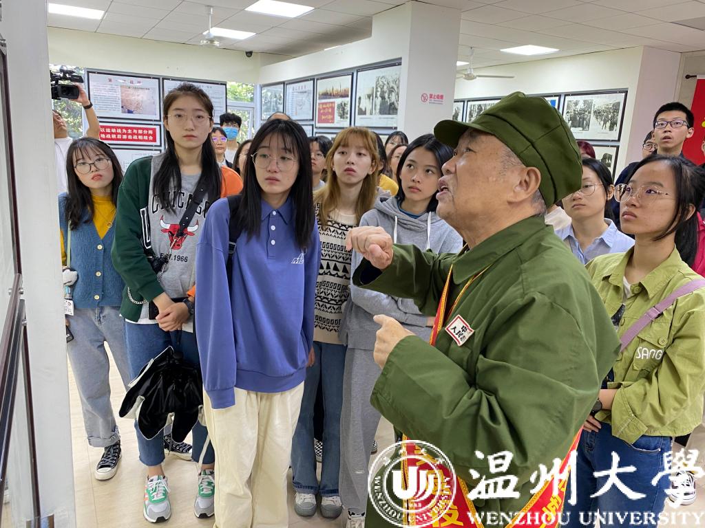 满冠平台的30多名同学还实地参观了瑞安市抗美援朝历史教育馆,这座占地面积近1300平米,室内展馆面积600平米的教育馆,展示了抗美援朝志愿军战士的纪念品、图片、文字资料以及志愿军战士当年缴获的美军防弹衣、急救包等100多件实物。该馆是志愿军老兵马发泉老人在2000年第二次去朝鲜后,看到曾经的战友和亲人尸骨不能魂归故里时,发起筹建的全国唯一县级抗美援朝历史教育馆。