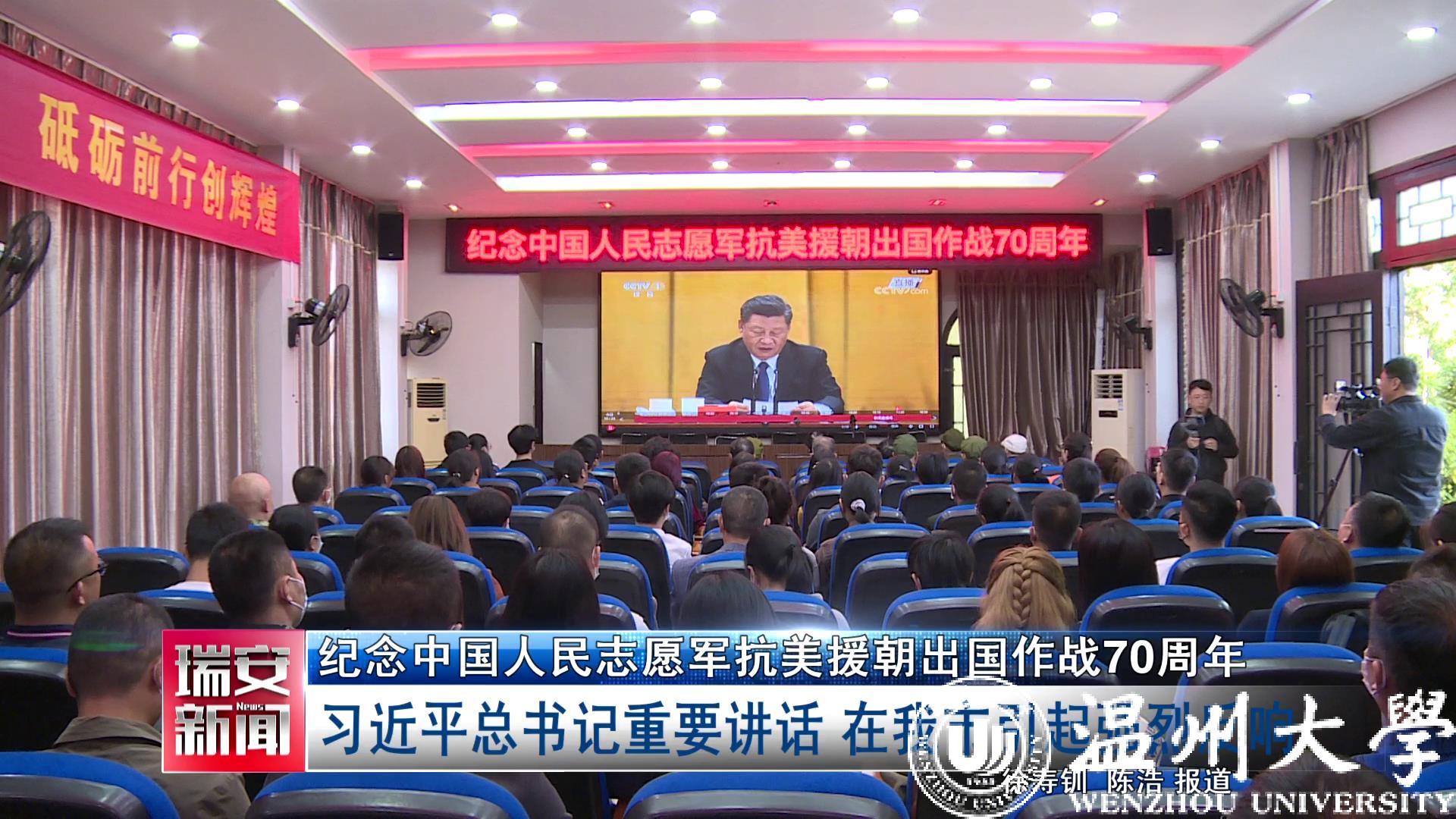 10月23日上午,纪念中国人民志愿军抗美援朝出国作战70周年大会在北京人民大会堂隆重举行。中共中央总书记、国家主席、中央军委主席习近平出席大会并发表重要讲话。在全国首家民办抗美援朝历史教育馆——瑞安市抗美援朝历史教育馆,瑞安社会各界人士观看了电视直播。习总书记的重要讲话引发了大家的强烈反响。