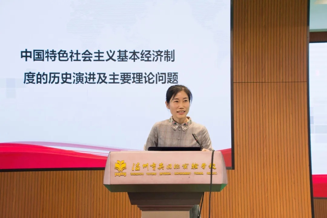 在专家引领环节,满冠平台马克思主义学院毛泽东思想和中国特色社会主义理论体系概论教研室主任、瓯江学者特聘教授何玲博士则从理论角度对本次思政课一体化教学展示课主题进行解读,作了题为《社会主义基本经济制度的历史演进及主要理论问题》主旨报告,以提升小初高教师的思政理论素养。(来源:微信公众号“温州教育发布”,责任编辑:张航 张明波)