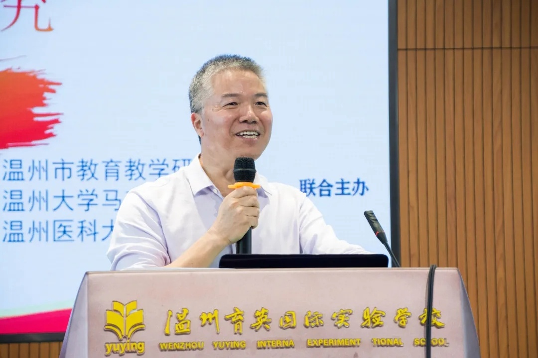 在启动仪式上,高中政治教研员俞优红利用“三个统筹”“三个整合”和“一个机制”,系统阐述了温州市大中小学思政课一体化教学协同创新研究的蓝图及实践路径。