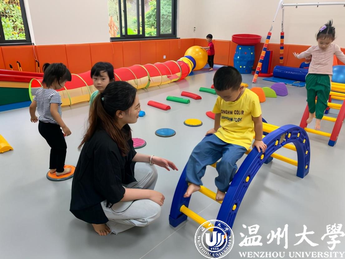 成绩优异的她,奋发向上,不断提升自身“博爱雅艺”师范气质,争做未来研究型教师,她将教育联系医学,得到学院的重视,现逐渐将感统教育作为一项专门的课题,结合温州教育特色,将研究带入幼儿园活动中去,共制定研究17套感统趣味课程,并用于课程训练,目前已经在瑞安、乐清、瓯海等十几所幼儿园进行实施教育,孩子在她的指导下通过爬、走、跑、跳、攀、平衡、翻滚、旋转等基本动作模式,结合多种教具以及具体的活动标准规范,且每节课都将用“恩物”的小肌肉静态发展作为结束,达到“动的最终目的是静”效果,大大加强了现在儿童的体育能力,大脑和身体得到充分协调。