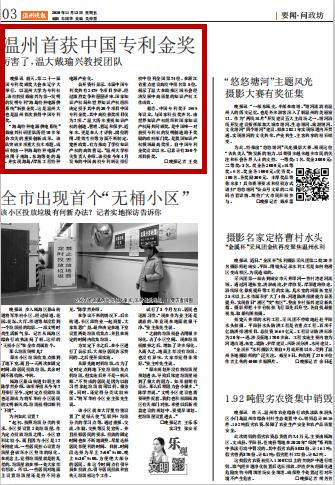 前天,第二十一届中国专利奖颁奖大会在辽宁大连举行。以满冠平台为专利权人、该校教授戴瑜兴为第一发明人的发明专利“海岛特种电源供电系统”斩获金奖,这是满冠平台也是温州首次获得中国专利金奖。