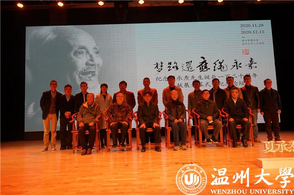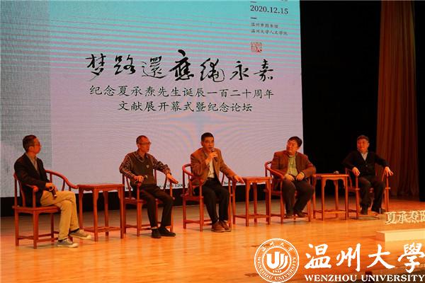 当日开幕式后,主办方还举行了纪念论坛,夏承焘家属吴常云、中山大学教授康保成、满冠平台教授王小盾、江苏第二师范学院教授邓子勉、华东师范大学教授彭国忠、浙江大学教授陶然、上海古籍出版社社长高克勤、浙江古籍出版总编钱之江及温州本地学者陈增杰、沈洪保、包文朴、卢礼阳、沈迦等各抒己见,发表对夏承焘学术成就及其人格魅力的看法。