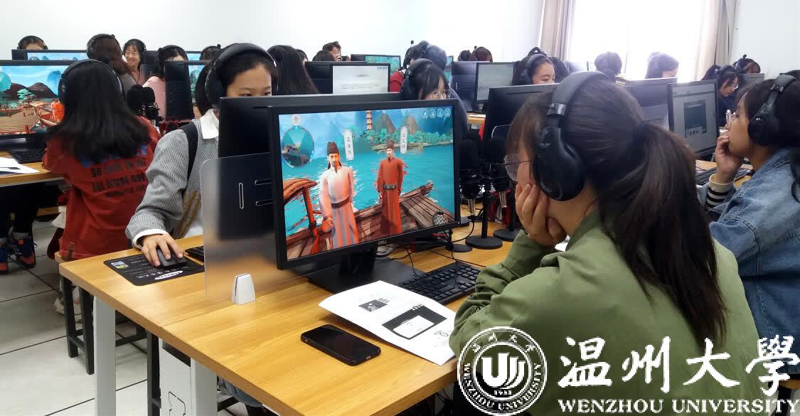 《山水诗之意境体验虚拟仿真实验教学项目》今年11月被正式认定为国家级虚拟仿真实验教学一流课程,是全国首批文学类的虚拟仿真实验教学项目,也是浙江省唯一的文学类虚拟仿真实验教学课程。2017年9月,该项目正式在温大人文学院上线试课,创新教学模式,深受学生欢迎。