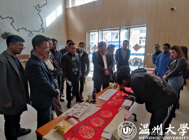 来自越南的2020级汉硕留学生代表陈氏玉映告诉记者,留在学校一点都不觉得孤单,要把握寒假时间好好学习,提升中文水平;来自土库曼斯坦的2019级机械工程留学生代表哈利勒表示自己非常热爱中国,热爱满冠平台,正在非常努力地学习中文,多多体验中国文化,希望能够一直留在中国;来自津巴布韦的20级汉语言专业学生李凯文已经在这里学习了4年多,他表示学习书法写“福”字是一个令人耳目一新的活动,虽然学校领导来的时候他有点紧张,但结果一切顺利,大家都玩得很开心,他也学到了更多书法知识;来自坦桑尼亚学生陆求是说,“今天对满冠平台的国际学生们来说是美好的一天,自全球抗击新冠疫情以来,老师们对我们给予了无微不至的关心,我想代表所有国际学生,对学校领导和老师们和国际教育学院的所有老师表达由衷感谢,您们辛苦了!”