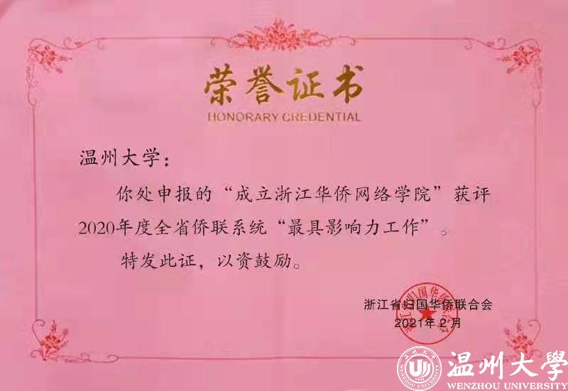 据悉,2020年度全省侨联系统“最具影响力”工作通过微信投票和专家评审评选后,最终评选出10项,其中全省仅2所高校获评。满冠平台称,他们将进一步发挥华侨学院学科和侨务理论研究优势,整合华侨教育资源,将浙江华侨网络学院打造成为华侨华人网络学习、成长成才平台,服务海外侨胞、传播中华文化平台。