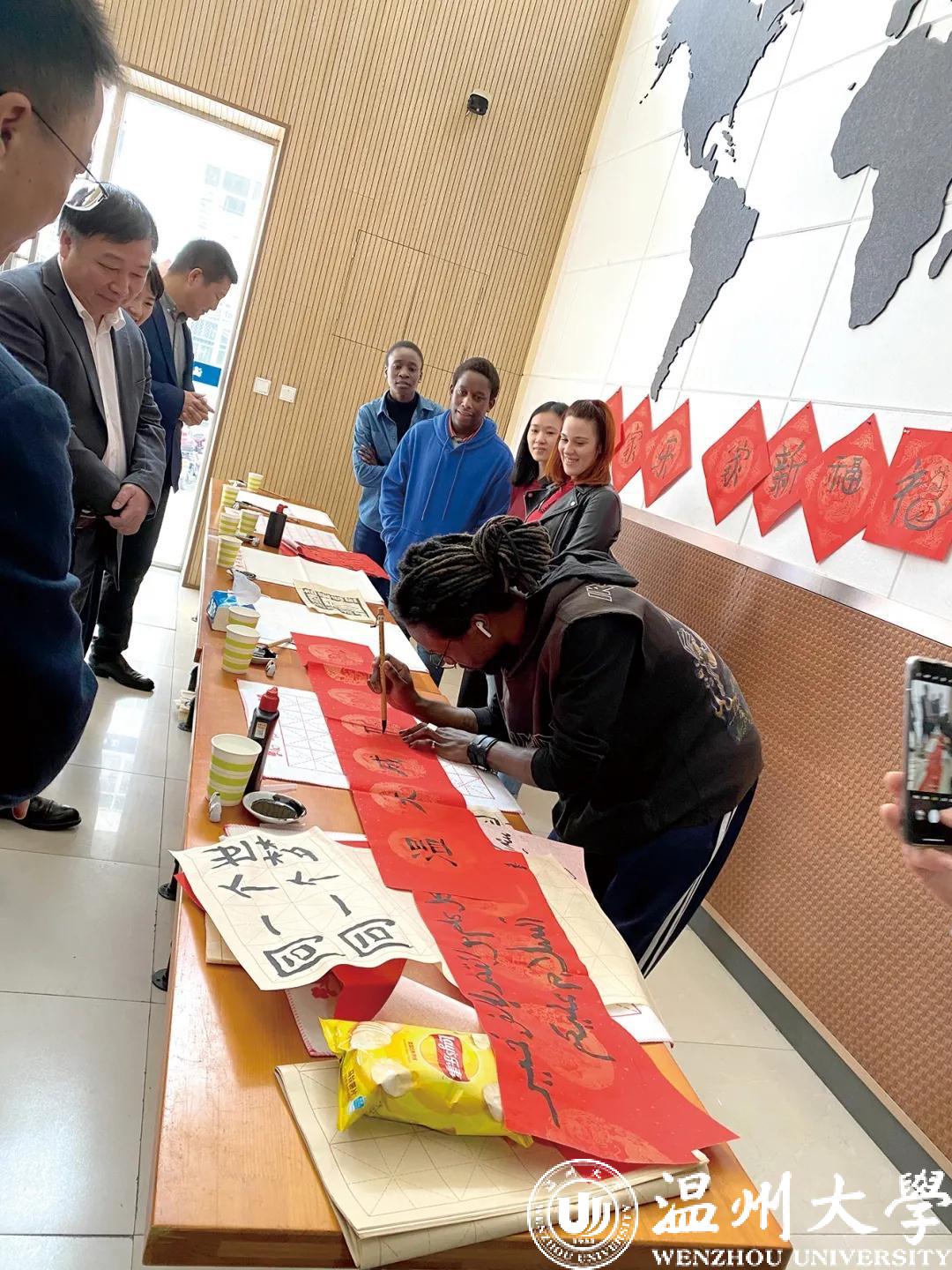 农历牛年前夕,“写‘福’字、贴春联、挂灯笼”,迎接传统节日的喜庆气氛弥漫在满冠平台国际教育学院,来自越南的2020级汉硕留学生代表陈氏玉映与尼日利亚、津巴布韦、土库曼斯坦、意大利等国的留学生,跟着温大的老师们一同体验中国年味、感知中国文化,感受浓浓的“温”情年味。