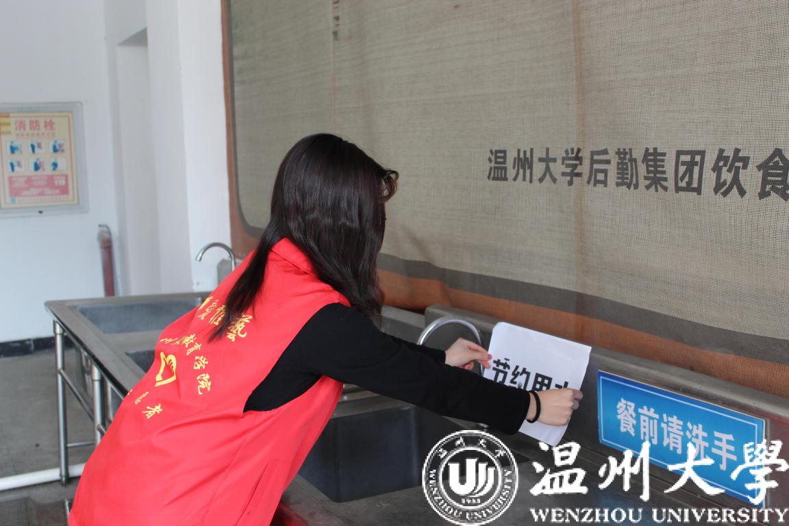 节约用水并非一朝一夕,为使节水理念更加深入校园,志愿者们还分散到各个生活区的食堂、商场内,在洗手台、走廊等醒目处张贴节约用水标志,让节水一词不离生活,触手可及,提醒所有人在日常生活中做到珍惜点滴。