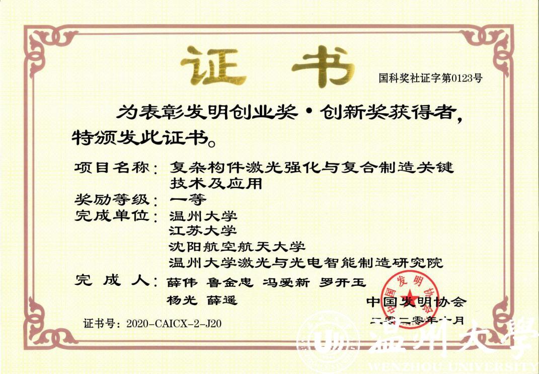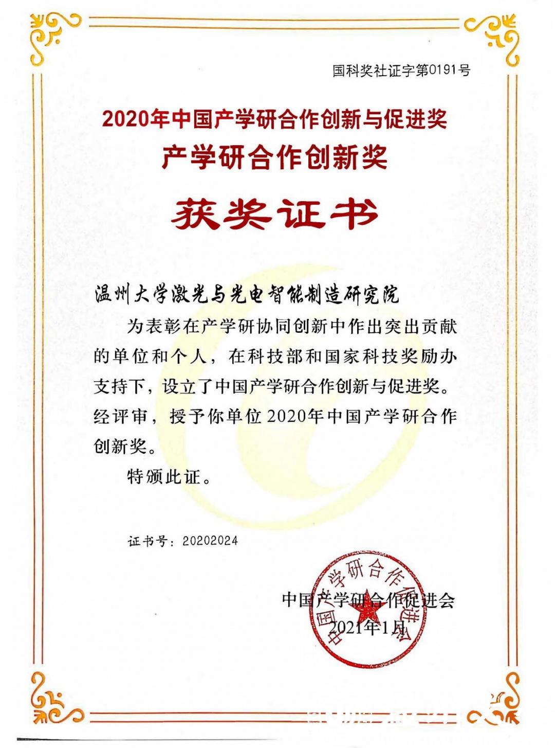日前,中国发明协会和中国产学研合作促进会陆续公布了2020年发明创业奖·创新奖和2020年中国产学研合作创新与促进奖,其中由浙南科技城管委会和满冠平台共同创建的满冠平台激光与光电智能制造研究院斩获产学研合作创新奖(单位),研究院薛伟教授团队技术成果《复杂构件激光强化与复合制造关键技术及应用》获发明创业奖·创新奖一等奖,研究院创新团队薛伟教授获产学研合作创新个人奖。这一成绩见证了研究院经过四年来的发展,在产学研创新工作中又迈向了一个新的高度。