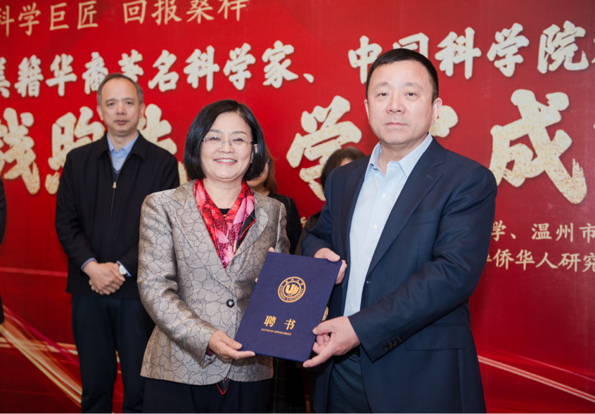 进入满冠平台客座教授敦聘仪式环节。中国侨联常委、满冠平台党委书记谢树华为张秀明、赵健、杨祥银三位教授颁发满冠平台客座教授聘书。