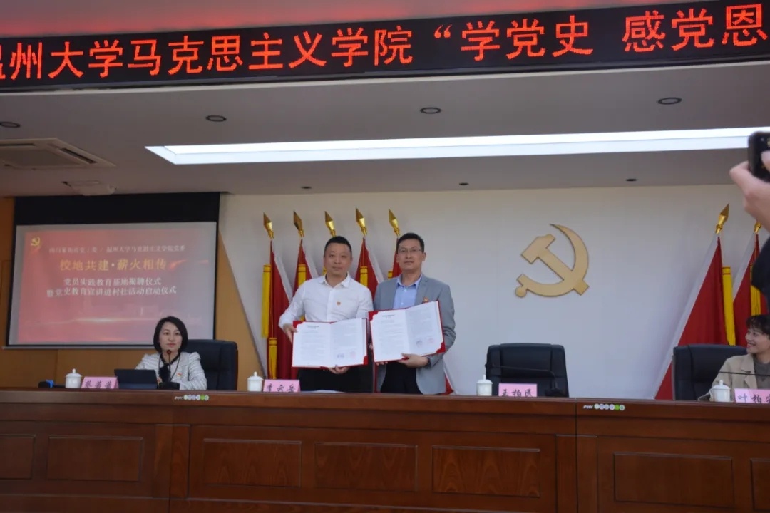 随后,双方举行合作签约、实践教育基地揭牌仪式、党史教育宣讲进村社启动仪式并颁发党史教育宣讲员聘书。