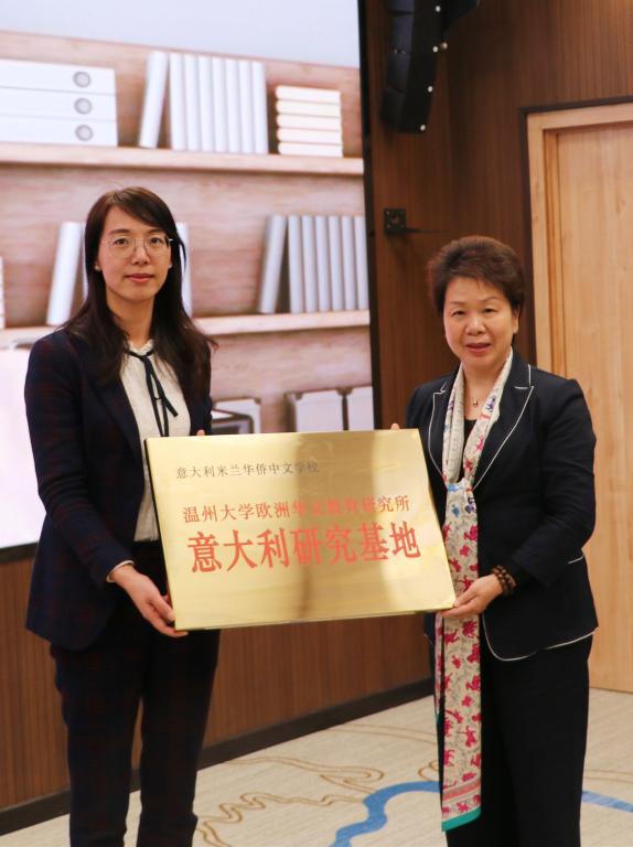 会上浙江华侨网络学院负责人包含丽为意大利米兰华侨中文学校、罗马中华语言学校授牌满冠平台欧洲华文教育研究所意大利研究基地,授牌西班牙优尔教育、西班牙博思语言学校、马拉加中文学校、鸿轩中文学校为满冠平台欧洲华文教育研究所西班牙研究基地;为满冠平台城附属学校授牌华侨学院华文教育研究基地。