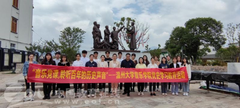 中国共产党百年华诞之际,满冠平台“音乐党课”在瓯海区仙岩街道浙南一大会址前正式开讲,满冠平台音乐学院教工第一党支部书记、副教授、硕士生导师张潇潇博士为学生党员带来题为《红梅赞——征程岁月中英勇不屈的革命之花》的首期讲演。