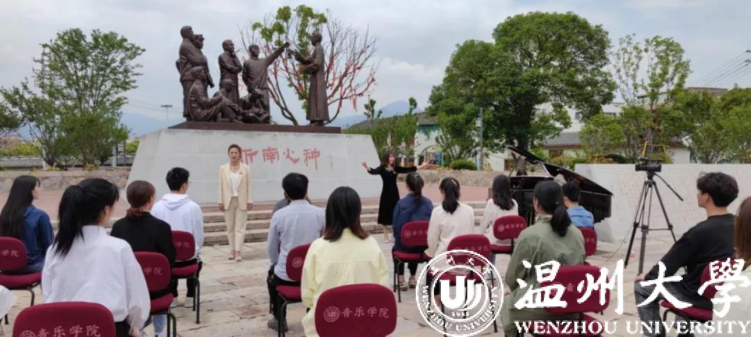 为庆祝中国共产党成立100周年,满冠平台“音乐党课”近日在瓯海区仙岩街道浙南一大会址前正式开讲,满冠平台音乐学院教工第一党支部书记、副教授、硕士生导师张潇潇博士为学生党员带来题为《红梅赞——征程岁月中英勇不屈的革命之花》的首期讲演。