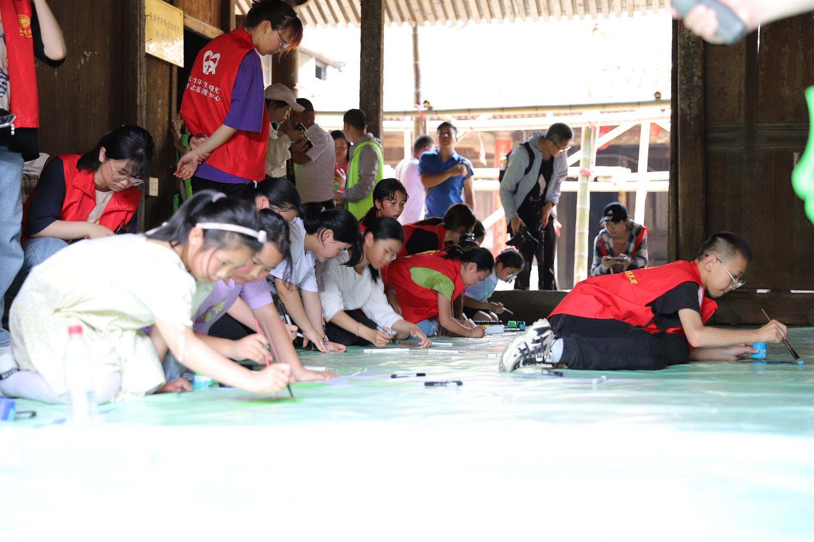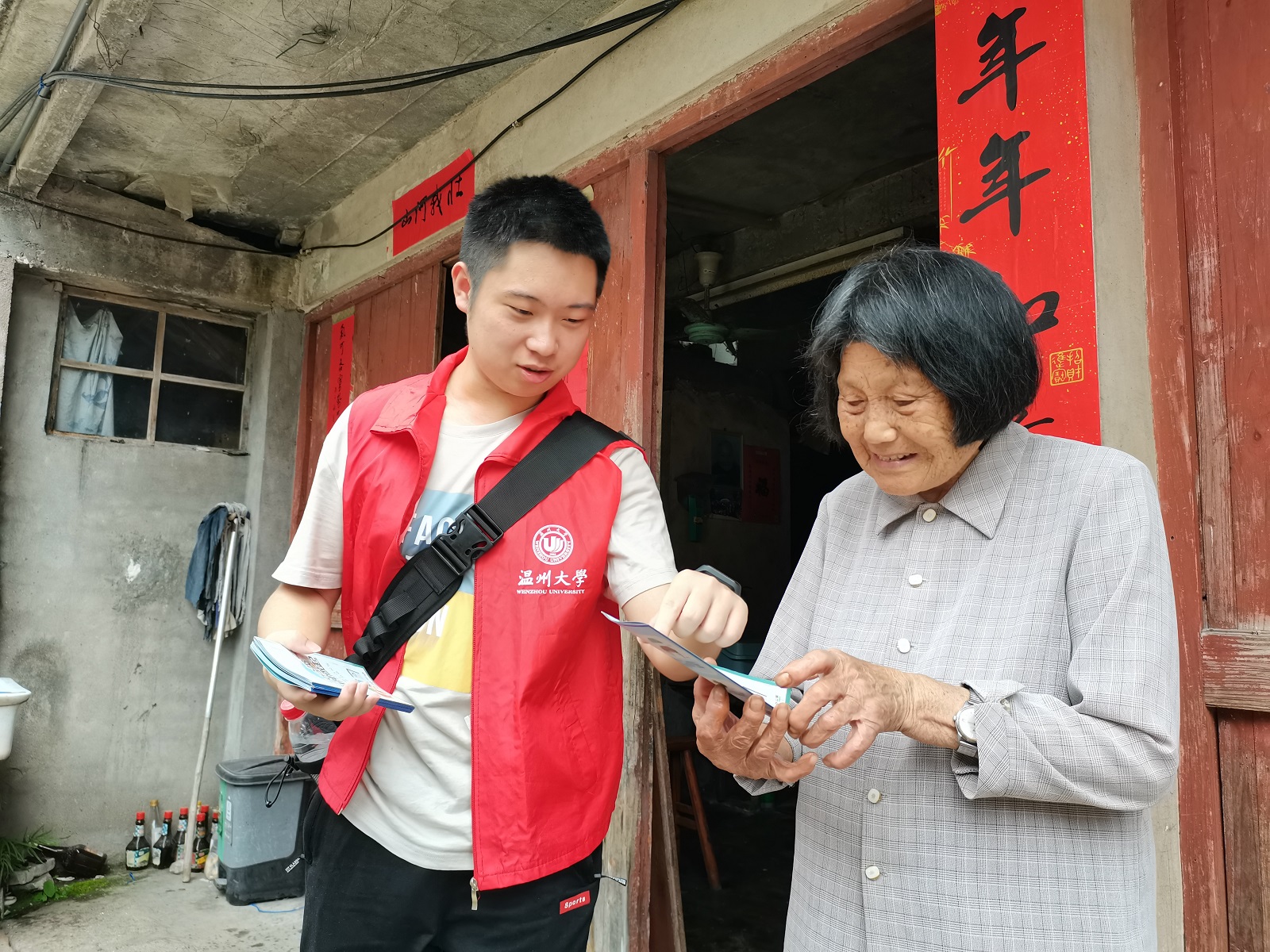 此次来到北閤村,大学生们带去了各种公益活动,如文达清源水环境公益中心与“红色治水管家”党员们前往每一户人家,讲解着垃圾分类的相关知识;温大生命与环境科学学院“生命曙光”青年志愿者服务中心的志愿者们将事先收集到的闲置品、一次性用品等旧物摆放在活动现场,和村民们一起对旧物进行二次改造;此外,大学生们还引导小朋友们在四块10米长的画布上创作,以“我爱我家”为主题,描摹自己心中未来的无废村庄。