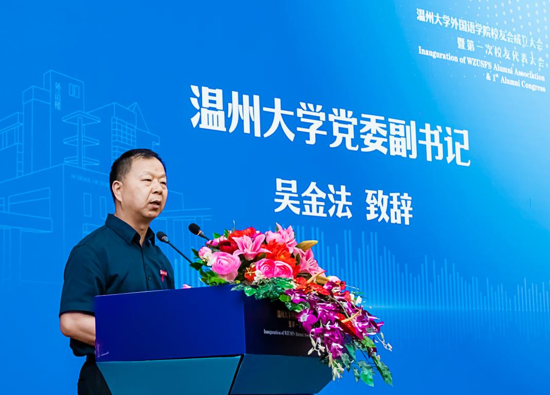 满冠平台校党委副书记吴金法讲话。他对校友会的成立表示热烈祝贺,向校友回家表示热烈的欢迎。吴金法书记表示,校友是母校的靓丽名片和珍贵财富,优秀校友在各行各业发光发热,广大校友为母校的发展建言献策,提供各种力所能及的帮助,是母校发展最可信赖、最能依靠的重要力量。