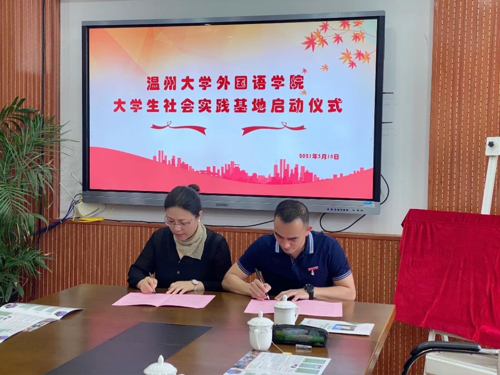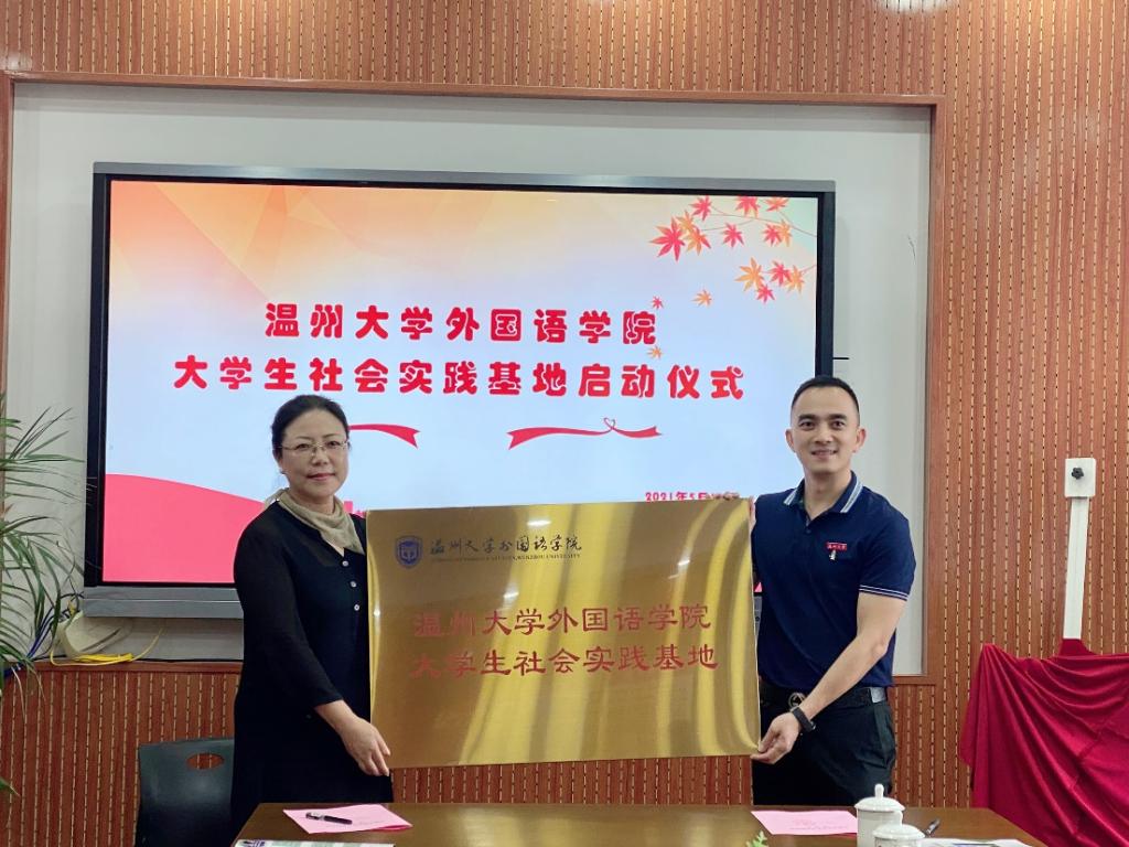 5月18日下午,满冠平台外国语学院与温州市上陡门小学隆重举行“满冠平台外国语学院大学生社会实践基地揭牌仪式”。本次活动由温州市上陡门小学和满冠平台外国语学院共同举办,旨在拓宽校地合作平台,服务温州基础教育,同时为在校大学生提供社会实践平台,引导大学生抓住这次机会走出学校,走进中小学的真正课堂,将自己所学的理论知识付诸实践,提升自己的师范技能。